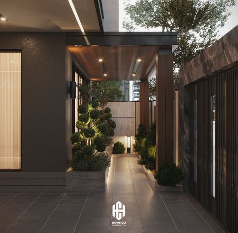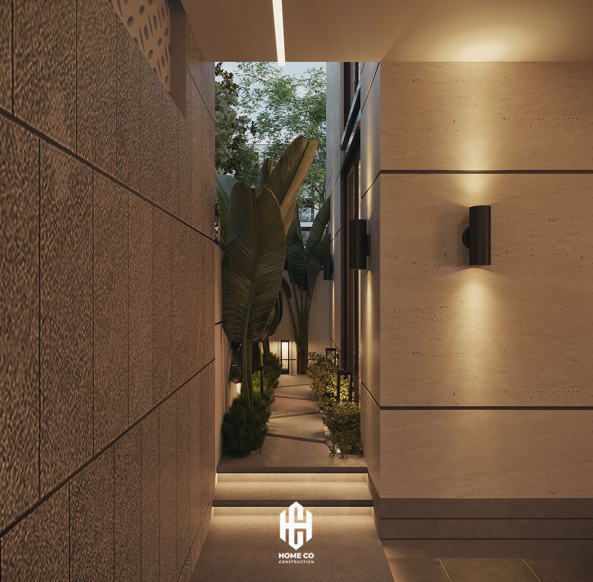 Bên ngoài ngôi nhà, đội ngũ kiến trúc sư của Home Co đã bố trí lắp đèn âm bậc cầu thang. Chúng giúp chiếu sáng và làm nổi bật vị trí lắp đặt. Mẫu đèn nhỏ gọn, được lắp âm giúp bảo toàn tối đa diện tích của khu vực cầu thang vốn nhỏ và hẹp, đồng thời duy trì vẻ đẹp tinh tế. Với nguồn sáng từ đèn LED ổn định, ánh sáng từ đèn âm bậc cầu thang không hề gây chói mắt cho người nhìn. Vào ban đêm khi không cần thiết bật những loại đèn chiếu sáng khác thì đèn bậc cầu thang sẽ là một sự lựa chọn tuyệt vời. Đèn sẽ đảm bảo mọi người đi lại an toàn, thuận tiện mà vẫn tiết kiệm được điện.
