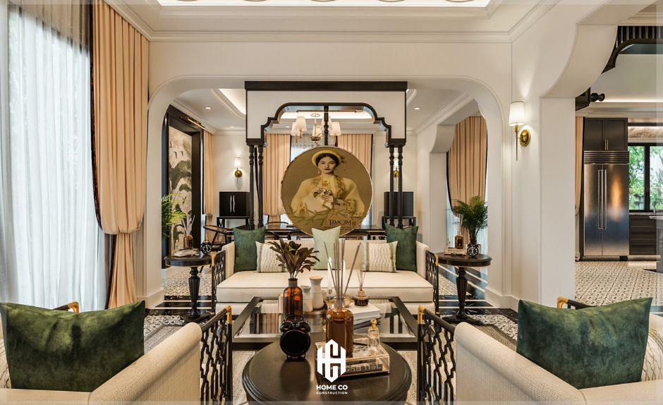 Không gian nội thất phòng khách mang đậm dấu ấn Indochine