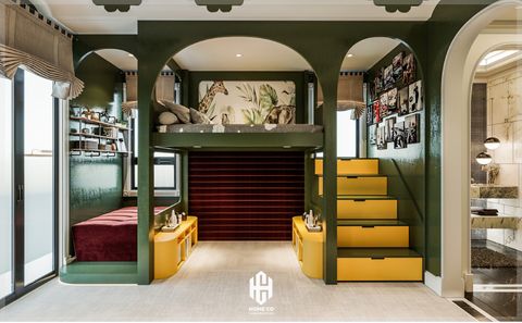 Khu vực giường tầng cho các bé với thiết kế sặc sỡ, bắt mắt