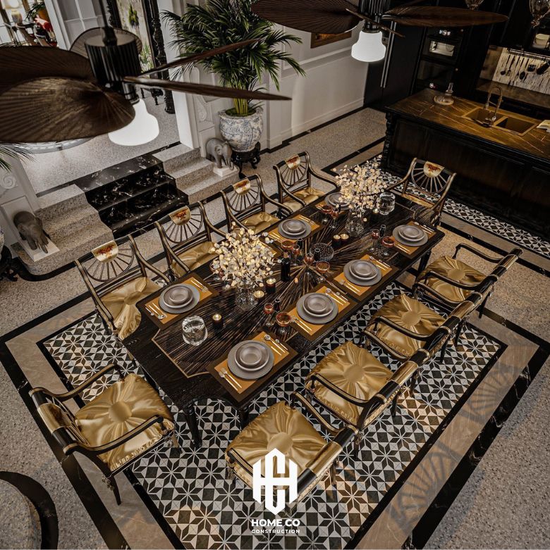 Bàn ăn với họa tiết vàng kim nổi bật