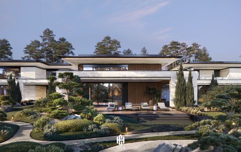 Biệt thự Đồi Hòa Bình được kiến tạo theo trường phái kiến trúc hiện đại, đề cao sự tối giản nhưng không làm mất đi vẻ sang trọng vốn có. Các đường nét kiến trúc được thiết kế mạch lạc, dứt khoát, tạo nên những hình khối rõ ràng và ấn tượng. Sự kết hợp hài hòa giữa các mảng kính lớn và vật liệu tự nhiên như gỗ, đá... không chỉ mang đến vẻ đẹp thẩm mỹ cao mà còn giúp tối ưu hóa ánh sáng tự nhiên, tạo nên không gian sống thoáng đãng, gần gũi với thiên nhiên.